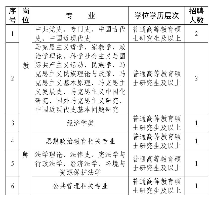 公开招聘全供事业编制专职教师8名。具体岗位、人数及专业见下表:
