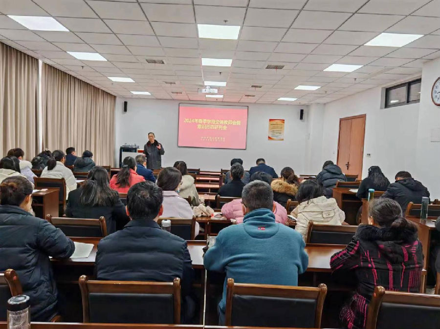 2月27日上午,我校召开2024年春季学期全体教师会曁意识形态研判会。校党委委员、二级调研员秦健参加并讲话,全体教师及教务科人员参加会议。